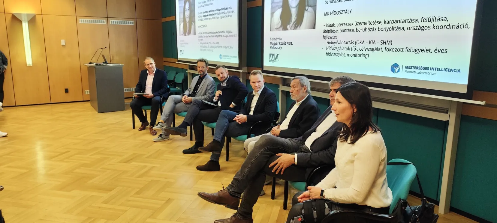 A panelbeszélgetésben részt vett: Lovas Tamás (BME), Dömötör Krisztina (Közút), Ritter Ádám (Moratus MARKET csoport), Farkas György (Mérnöki Kamara), Csanády Miklós (Óbuda) és Kis Tamás (STRABAG). A Meetup hallgatói megtudhatták mi az az AI megoldás, amely a legtöbbet segíthet jelenleg és hol van annak a pénzügyi megtérülése az építőiparban, mire elegendő a szakmai jogosultság, mennyire kell ismernie vagy alkalmaznia egy mérnöknek az AI trendeket.