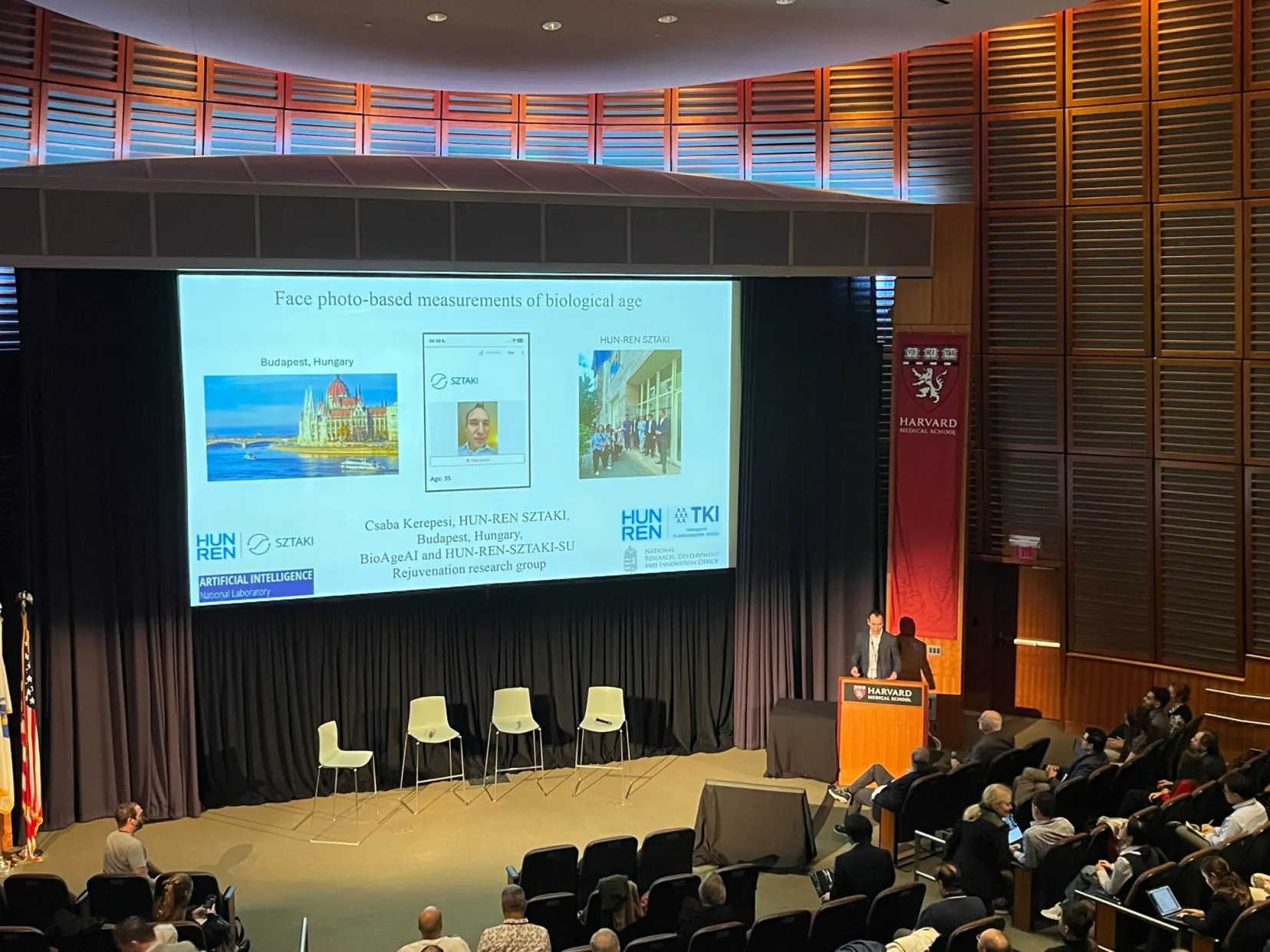 Kerepesi Csaba, a HUN-REN SZTAKI Mesterséges Intelligencia Kutatólaboratóriumának munkatársa, a BioAgeAI kutatócsoport vezetője a Harvard Medical School által szervezett, annak bostoni campusán rendezett Biomarkers of Aging Consortiumon tartott előadást az AI és az öregedés órák kapcsolatáról, illetve a fotó alapú biológiai életkorbecslésről.