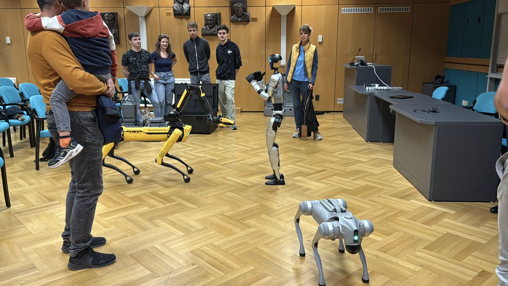 A humanoid robot kezet fogott, integetett, sőt még egy leesett pénztárcát is átvett az egyik robotkutyától, a közönség nagy örömére. A rendezvényt a HUN-REN elnöke és vezérigazgatója is meglátogatták.