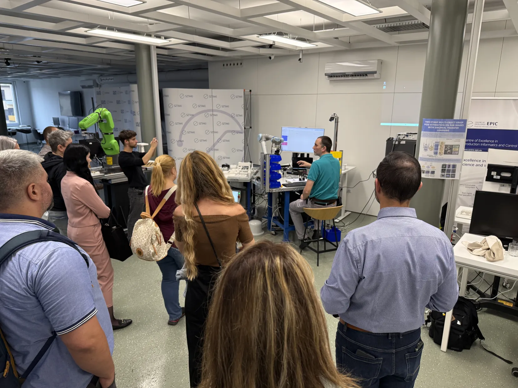 A 2025. szeptember 18-i programról itt írtunk, de 25-én és 26-án is meg lehetett látogatni az intézet Lágymányosi utcai épületének Innovációs és Demonstrációs Terét (IDT). A látogatók kipróbálhatták a portrérajzoló robotot, és megismerkedhettek a kollaboratív robotos szerelés és munka rejtelmeivel.